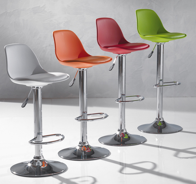 – Cuscinetto ecopelle in tinta – Struttura: cromato – Sedili: Polipropilene: bianco / arancio / rosso / verde / nero / grigio